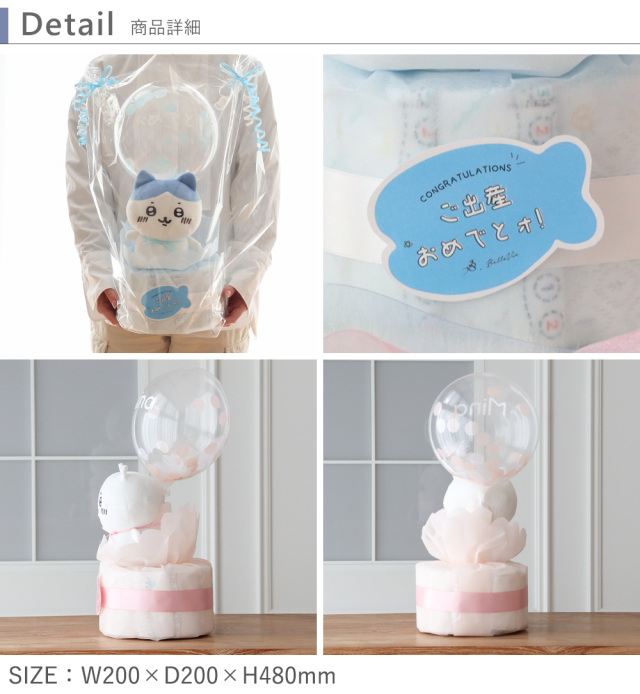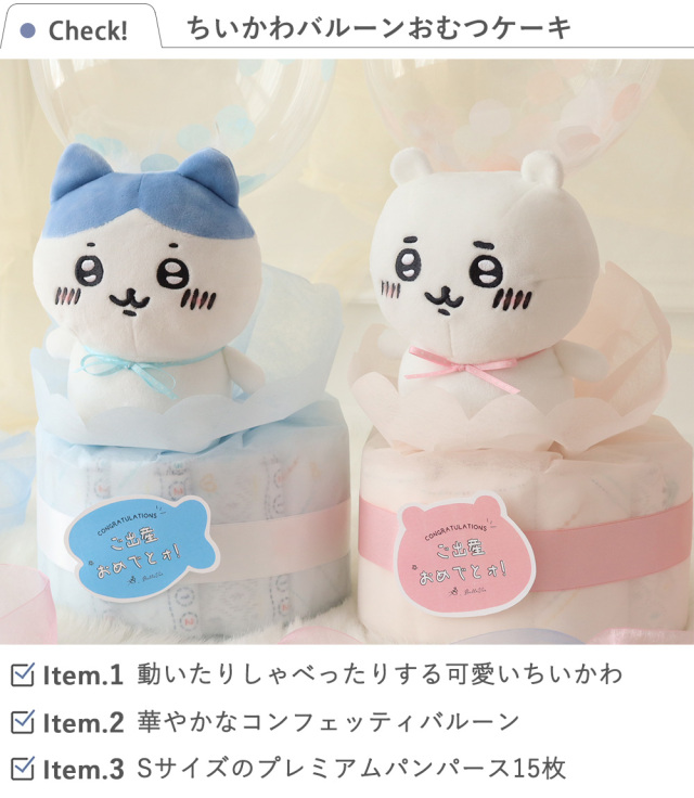 【出産祝い おむつケーキ】ちいかわバルーンおむつケーキ