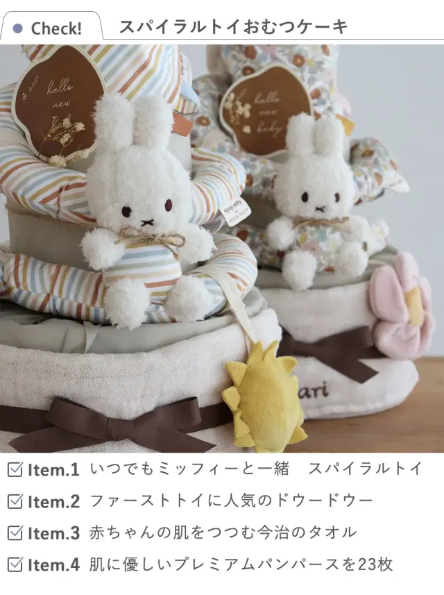 【出産祝い】miffy x Little Dutch スパイラルトイおむつケーキ