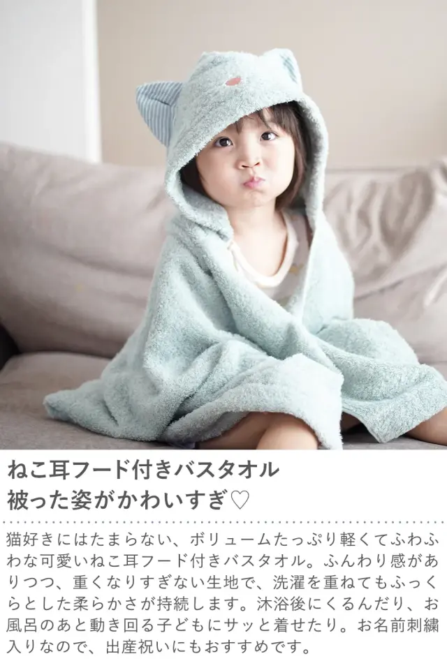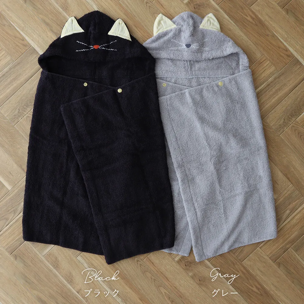 猫好きにはたまらない、ボリュームたっぷり軽くてふわふわな可愛いねこ耳フード付きバスタオル。