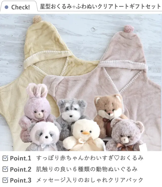 【出産祝い】mocmof星型おくるみ+ふわぬいクリアトートギフトセット