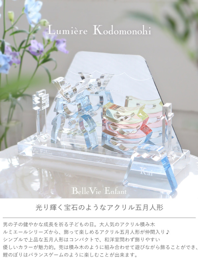 【出産祝い 誕生日】Lumiere Kodomonohi アクリル五月人形 (日本製) 販売期間: 名前札について: 選択してください 刻印を希望する(¥0) 名前札を2個希望する(¥3,000) 刻印を希望しない(BVEロゴ)(¥0) アンファンオリジナルメッセージカード: 選択してください カード希望しない(¥0) アンファンカード(手書き用無地)(¥0) アンファンカード(自由文)(¥0) ラッピングについて※必須: 選択してください リボンラッピング(¥0) 包装紙ラッピング希望する(¥330) アンファンギフトバッグ※必須: 選択してください ギフトバッグ希望しない(¥0) ギフトバッグ希望する(¥250) ご用途: 選択してください ご出産祝い お誕生日祝い 自宅用 クリスマス 内祝い その他(備考に記載) ママへ贈るプチギフト♪※必須: 選択してください プチギフトを希望しない(¥0) ディカフェコーヒー(¥2,310) プティ・スワッグ(¥1,650) YUZUハンドクリーム(¥1,540) 刻印するお名前(アルファベット8文字、又は日本語5文字まで): 数量: 個 カートに追加
