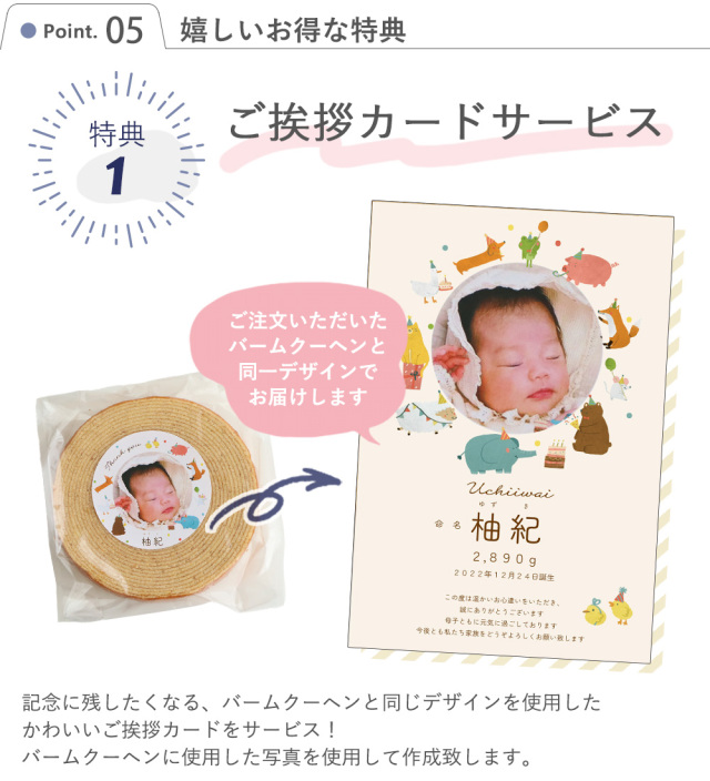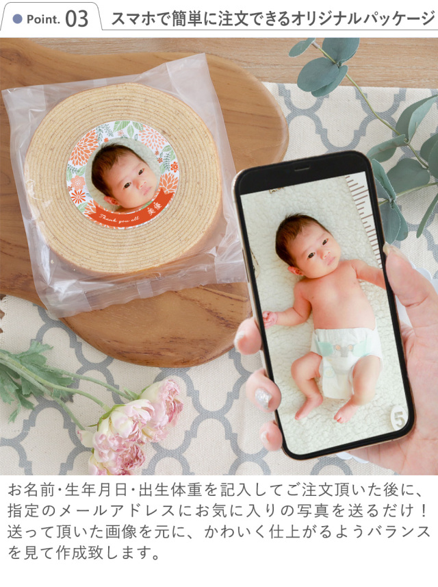 出産内祝い お名前とお写真入りバームクーヘン
