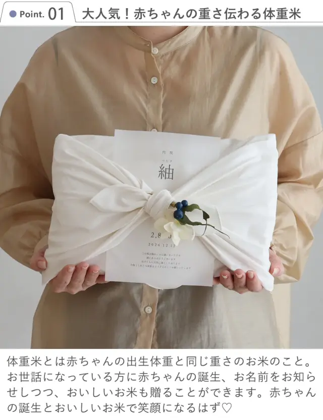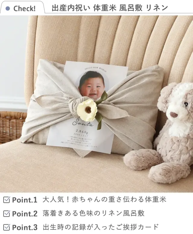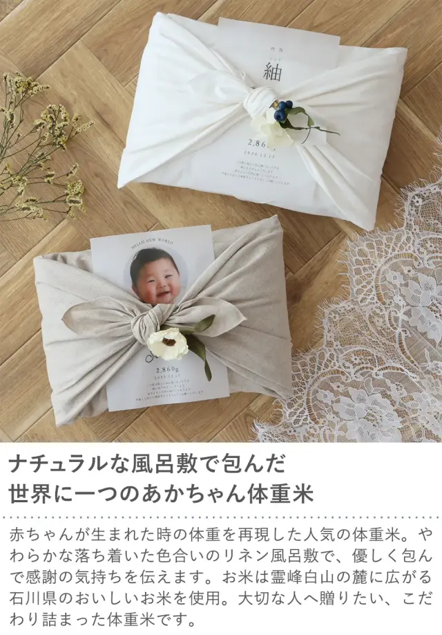 出産内祝い 体重米 風呂敷 リネン