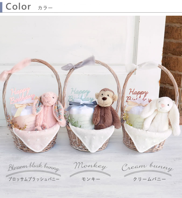 【出産祝い ギフトセット】ジェリーキャットおむつバスケット bgset 販売期間: タイプをお選びください: 選択してください ブロッサムブラッシュバニー モンキー クリームバニー ドラゴン 名入れ刺繍※必須: 選択してください 名入れ希望しない(¥0) 名入れ希望する(¥330) ギフトバッグ※必須: 選択してください 不要(¥0) ギフトバッグ希望する(¥220) 名入れするお名前(有償でご希望の方): バスケットが変わりました: 選択してください バスケット変更了承しました プラスワンおもちゃ: 選択してください プラスワンおもちゃを希望しない(¥0) カミカミみつばち(¥1,050) 絵本はらぺこあおむしボードブック(¥1,100) 布絵本もぐもぐばあ(¥1,760) 布絵本いないいないばあ(¥1,760) ままごころベビーおでかけセット(¥1,980) シャカシャカウサギ(¥960) ママへ贈るプチギフト♪※必須: 選択してください プチギフトを希望しない(¥0) ディカフェコーヒー(¥2,310) プティ・スワッグ(¥1,650) YUZUハンドクリーム(¥1,540) 数量: 個 カートに追加