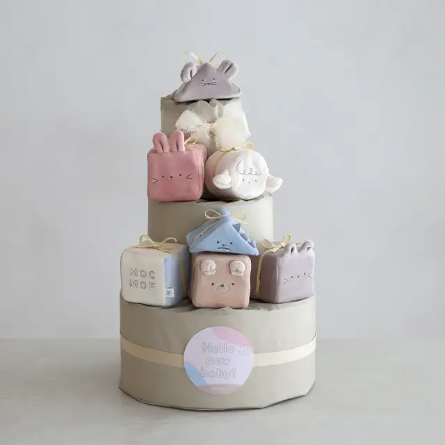 【出産祝い】mocmof (モクモフ)やわらか布積み木おむつケーキ