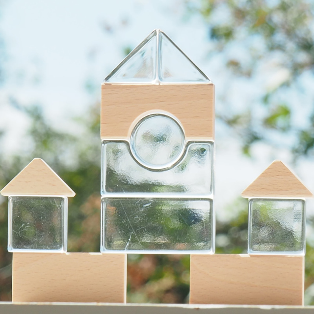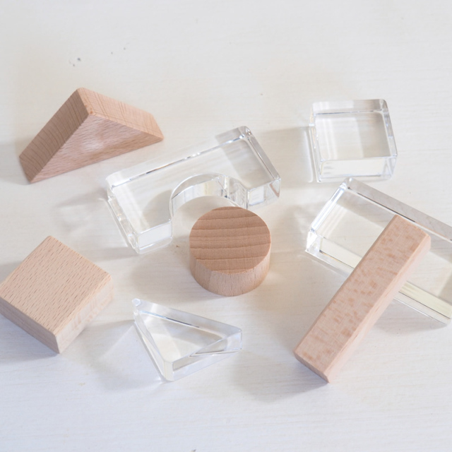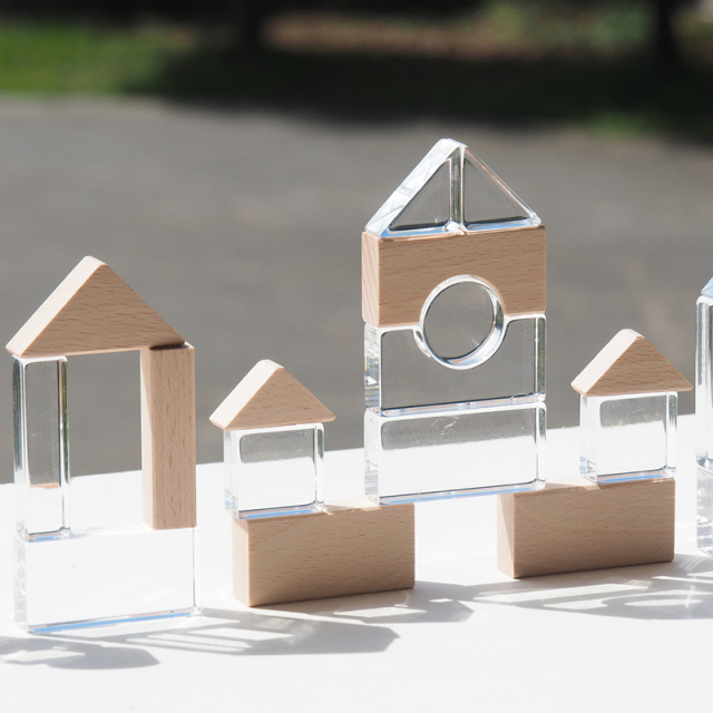 【出産祝い 誕生日】Lumiere Cubes クリアアクリル&木の積み木 26ピース(日本製)
