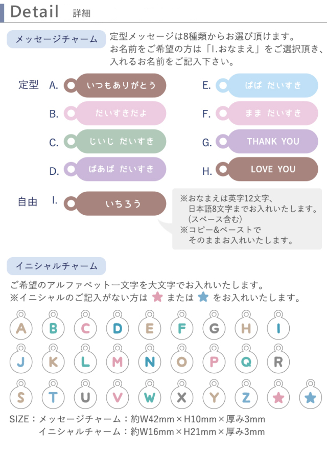 それぞれのメッセージ・イニシャルを「その他備考」にご記入ください: