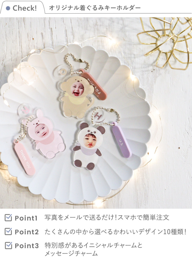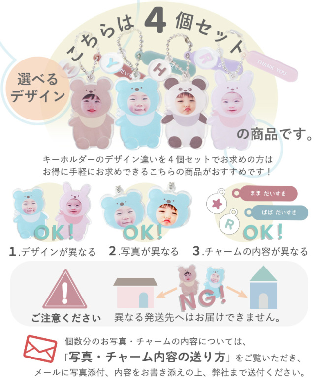 【名入れ】オリジナル着ぐるみキーホルダー写真入り【選べるデザイン・4個セット】