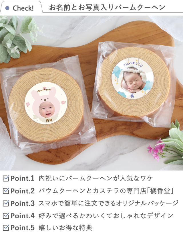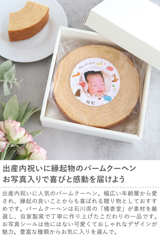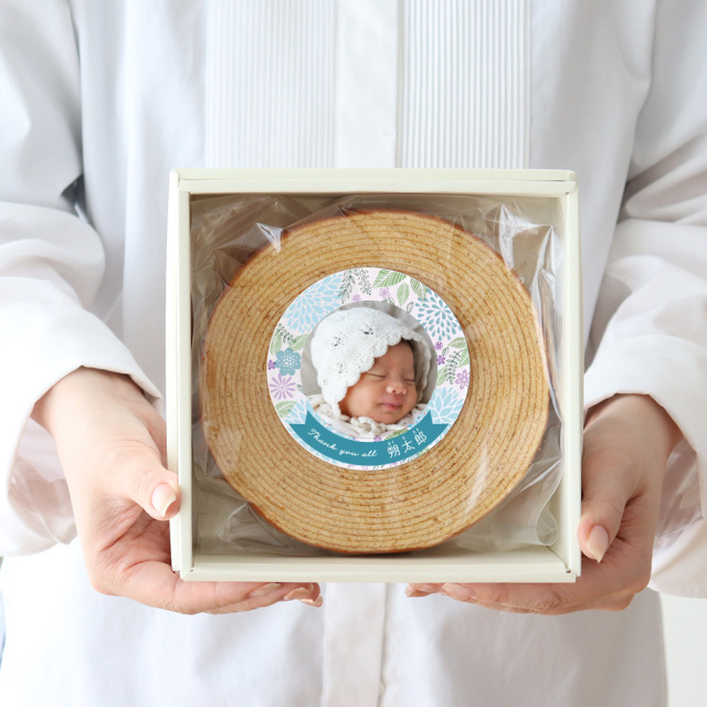 出産内祝い お名前とお写真入りバームクーヘン