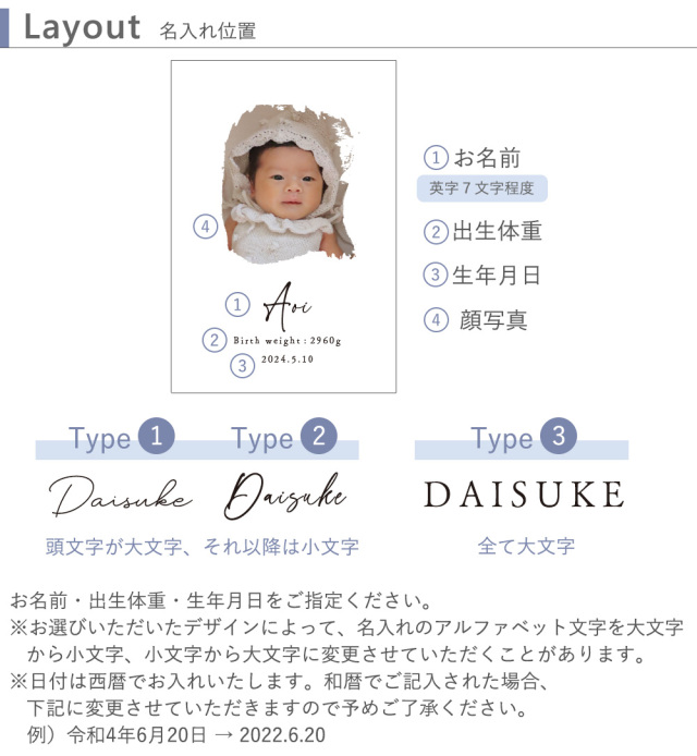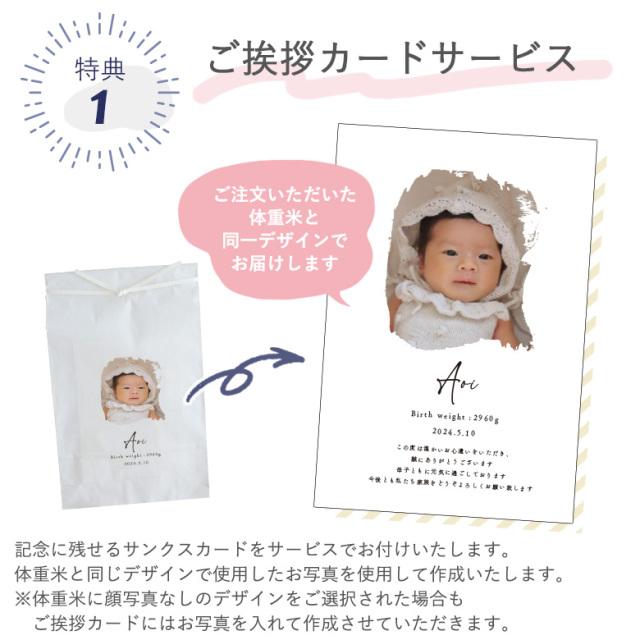 出産内祝い 赤ちゃんの写真入りシンプル体重米 クラフト 販売期間: 袋のカラー: 選択してください クラフト ホワイト デザインをお選びください: 選択してください Type1 Type2 Type3 ご挨拶カードについて: 選択してください ご挨拶カードを希望しない ご挨拶カードを希望する(定型文)(¥0) ご挨拶カードを希望する(自由文)(¥0) 有償ラッピング・のしデザインについて+550円※必須: 選択してください ラッピング不要・のし不要 ラッピング・のし希望 TypeA(¥550) ラッピング・のし希望 TypeB(¥550) ラッピング・のし希望 TypeC(¥550) ラッピング・のし希望 TypeD(¥550) 「のし」にお入れするお名前(日本語): ※有償ラッピングを希望してない場合は熨斗はお付けできません。 ギフトバッグ※必須: 選択してください 不要(¥0) ギフトバッグ希望する(¥220) ご用途: 選択してください 出産内祝い 結婚内祝い ご出産祝い お誕生日祝い 自宅用 クリスマス その他(備考に記載) SNSやHPに掲載してもよろしいですか?: 選択してください OK! NG オプション(アクリルキーホルダー): 選択してください 希望しない(¥0) アクリルキーホルダー購入(¥1,500) オプション(アクリルスタンド): 選択してください 希望しない(¥0) アクリルスタンド購入(¥3,000) お名前※必須: 生年月日: 体重: 数量: 個 カートに追加