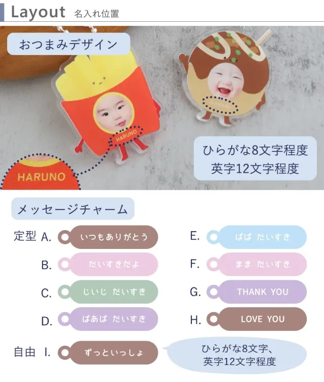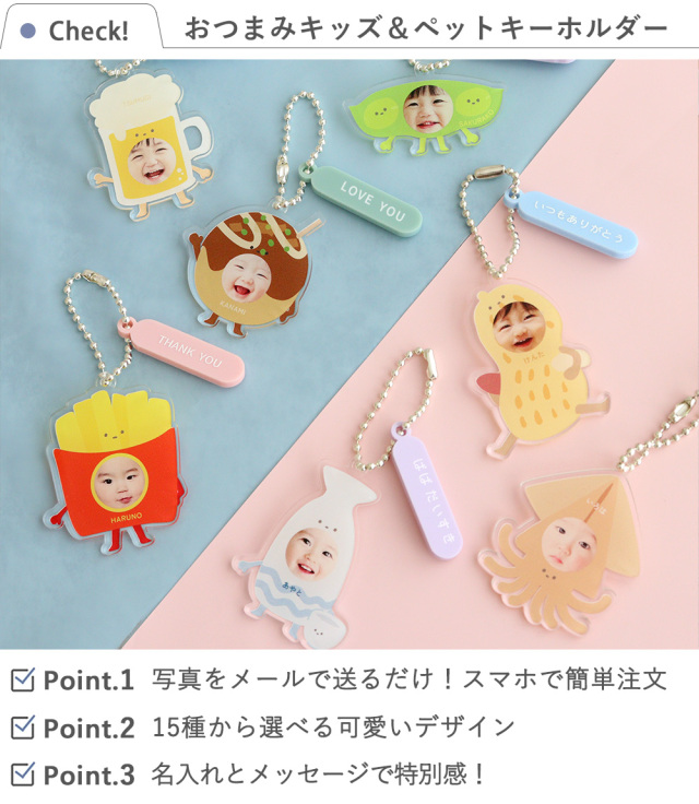 【名入れ】おつまみキッズ&ペット 顔はめキーホルダー
