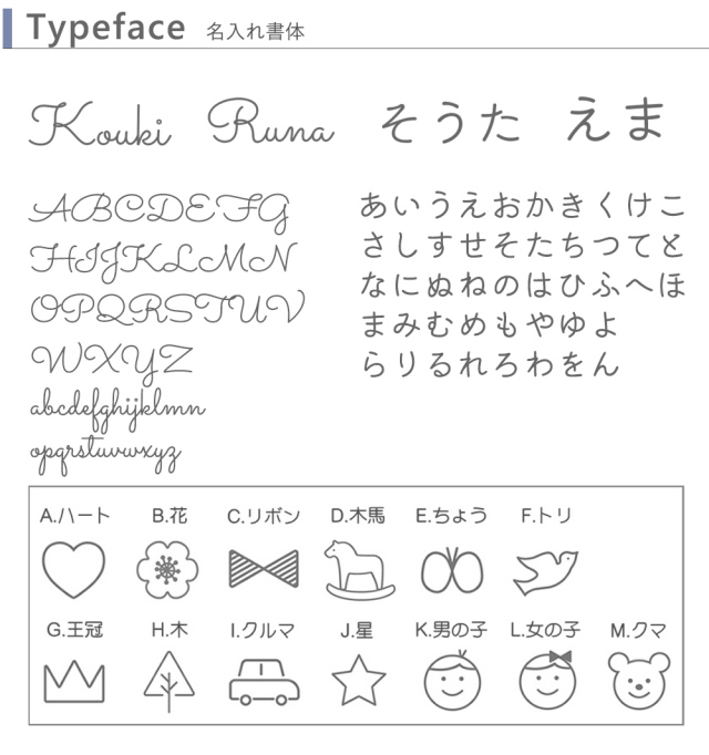 名入れするお名前:アルファベット(9文字以内):
