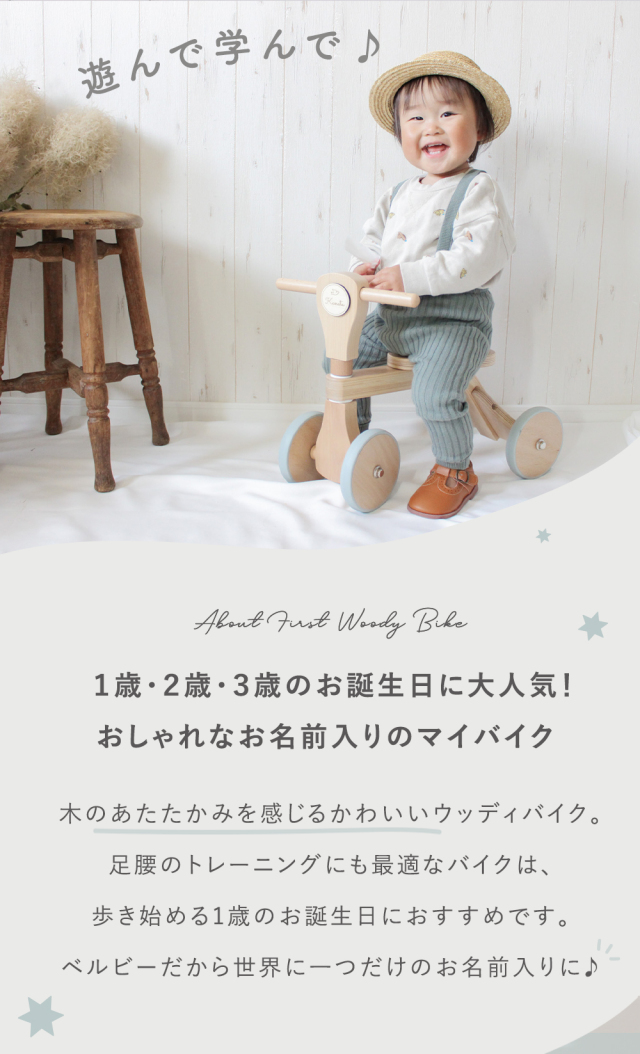 【知育玩具 木のおもちゃ 1歳誕生日】名入れファーストウッディバイク