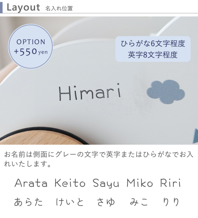 名入れするお名前(ひらがな6文字/英字8文字程度):